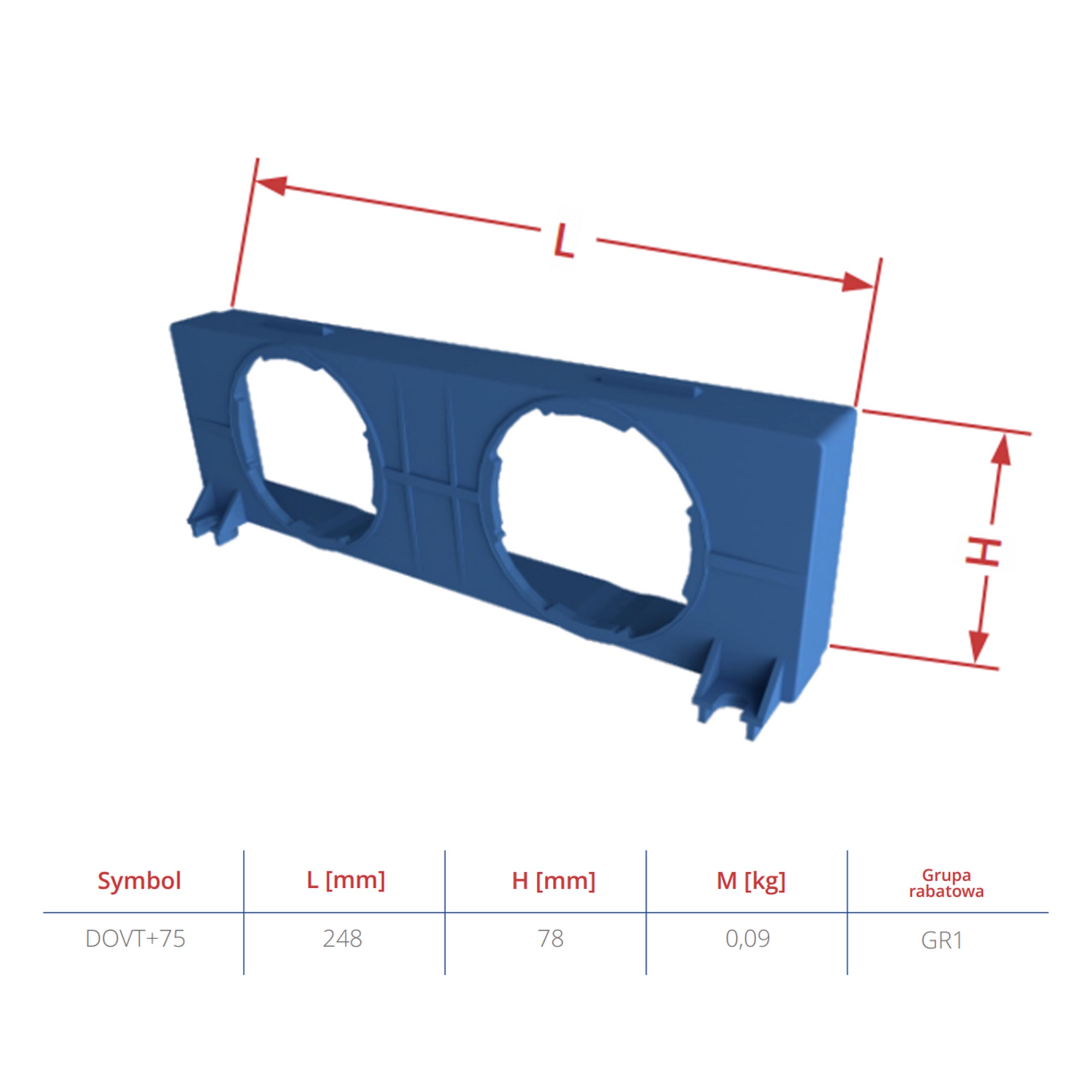 Dekiel z otworami DOVT+75 znajduje zastosowanie w systemach wentylacyjnych wymagających rozbudowy lub dodatkowych przyłączy: