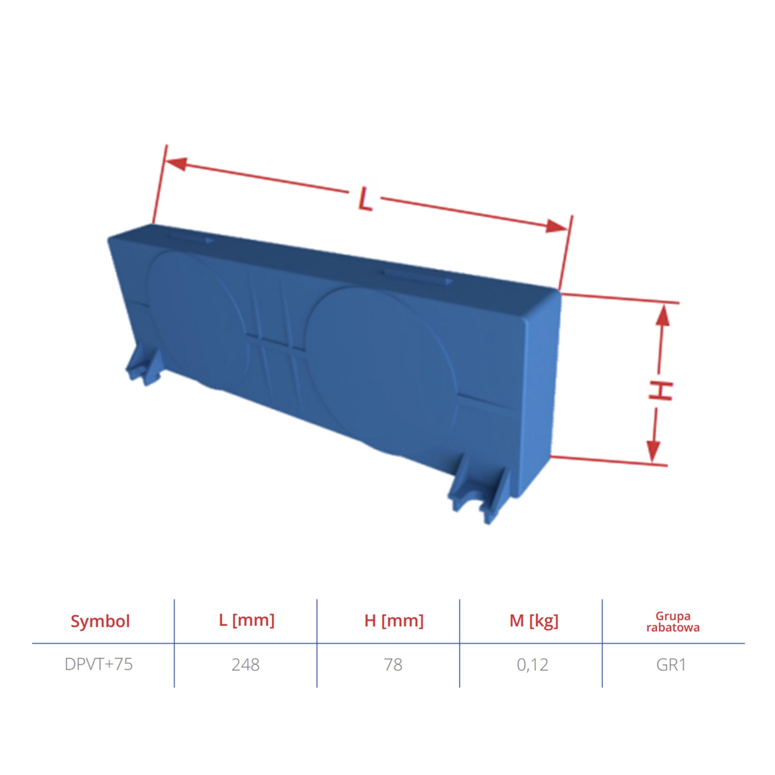 Dekiel pełny DPVT+75 VENTIFLEX przeznaczony do szczelnego zamykania boków modułów w systemie wentylacyjnym Ventiflex Plus